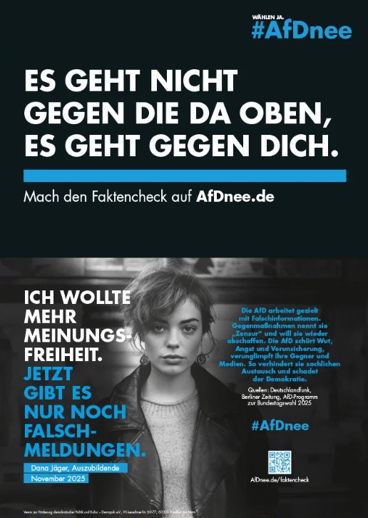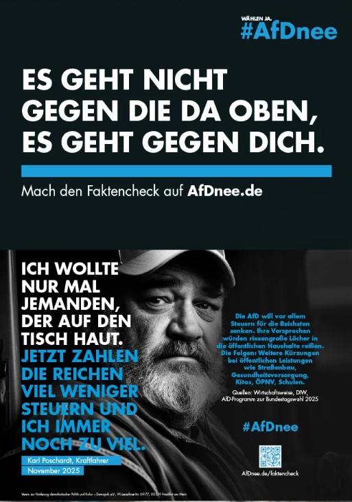 Eine weitere Initiative, die sich kritisch mit den Inhalten der Afd auseinandersetzt und wie wir Materialen für den Kampf gegen die Rechtspopulisten anbietet ist #AfDnee. Auf deren Webseite gelangt ihr durch einen Klick auf eines der beiden Vorschaubilder oben.